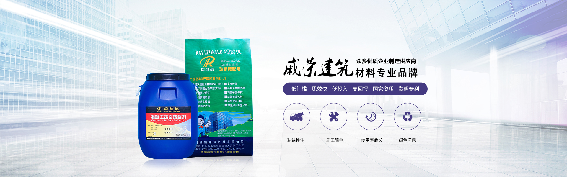 東莞市戚榮建筑材料有限公司是東莞市瑞納德建筑材料有限公司旗下子公司,是一家集研發(fā)、生產(chǎn)、銷售、技術(shù)服務(wù)為一體的技術(shù)型企業(yè),,并通過ISO9001:2000質(zhì)量管理體系及ISO14001:2004環(huán)境管理體系世界標準認證。現(xiàn)已在廣東、浙江、北京、河南鄭州、沈陽、重慶等均有生產(chǎn)基地。